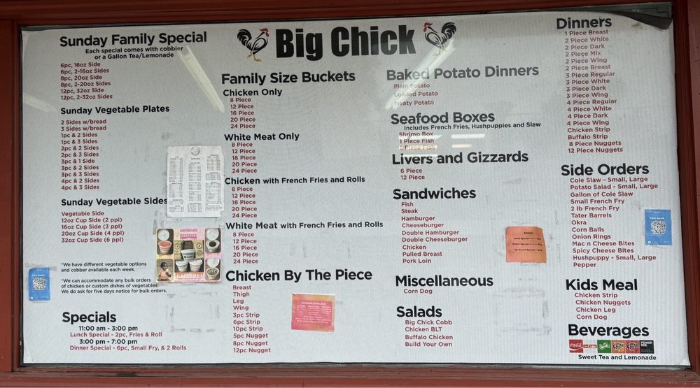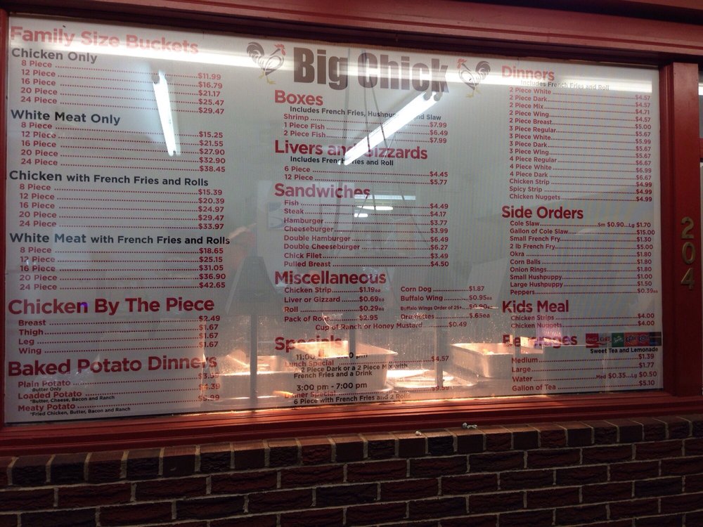 Big Chick Menu